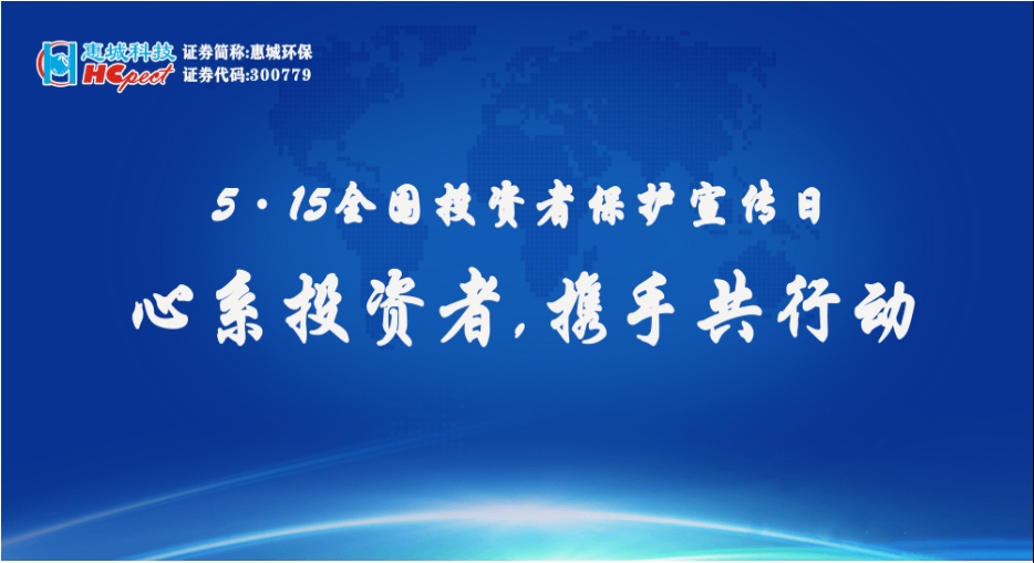惠城環保將以“5·15全國投資者保護宣傳日”活動為契機,堅持以人民為中心的價值取向,宣導證券期貨政策法規,切實保護投資者合法權益,服務資本市場高質量發展。