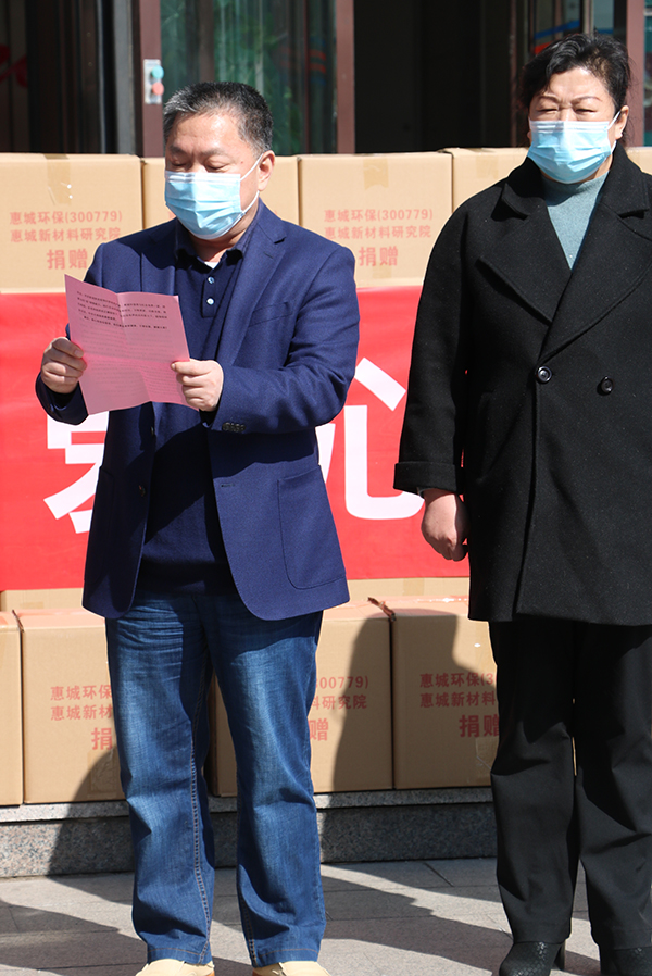 青島市總工會(huì)黨組成員,副主席周新國(guó)講到,在全市上下眾志成城、抗擊新型肺炎疫情的重要時(shí)刻,惠城環(huán)保向湖北地區(qū)捐贈(zèng)殺菌物資,是企業(yè)積極履行社會(huì)責(zé)任、助力疫情防控的一項(xiàng)愛(ài)心捐贈(zèng)公益活動(dòng)。