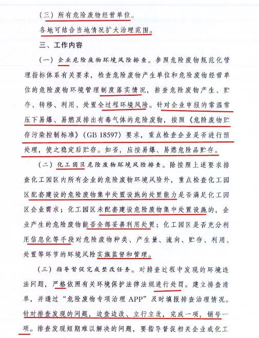 日前生態環境部印發加急文件《關于開展危險廢物專項治理工作的通知》。