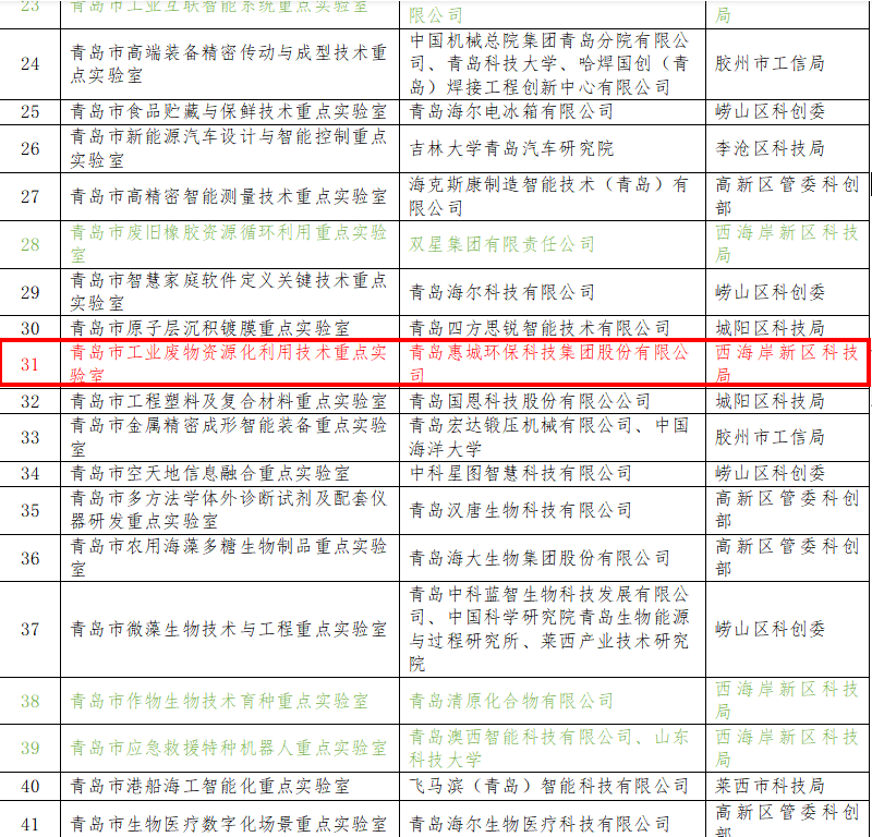 青島市重點(diǎn)實(shí)驗(yàn)室是開(kāi)展前沿創(chuàng)新領(lǐng)域工作的重要支撐,更為青島市高質(zhì)量發(fā)展保駕護(hù)航。近年來(lái),青島惠城環(huán)保科技集團(tuán)股份有限公司始終以“綠水青山就是金山銀山”為發(fā)展理念,在工業(yè)“三廢”資源循環(huán)利用技術(shù)創(chuàng)新及工業(yè)應(yīng)用等方面積累了豐富的成功經(jīng)驗(yàn),作為環(huán)保型高新技術(shù)企業(yè),公司將充分發(fā)揮行業(yè)和技術(shù)領(lǐng)先優(yōu)勢(shì),面向國(guó)家戰(zhàn)略科技發(fā)展技術(shù)需求,開(kāi)展應(yīng)用基礎(chǔ)研究及競(jìng)爭(zhēng)前沿技術(shù)研究,為提升產(chǎn)業(yè)核心競(jìng)爭(zhēng)力、推動(dòng)行業(yè)技術(shù)進(jìn)步提供支撐。